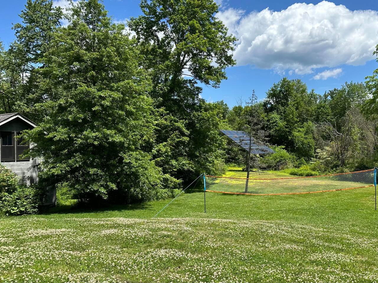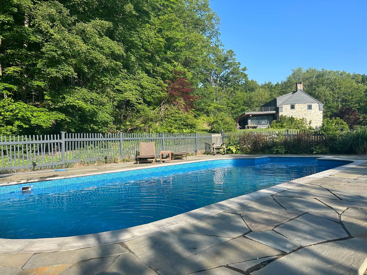 Sole use of the cottage, the private back yard and stone deck area, fire pit and coal fired bbq so you can relax under a canopy of trees in total privacy. 7 acres of mixed woodlands SHARED heated salt water pool access during pool season from mid MAY until late September (weather dependent.) We own the stone house next door ( set a good distance away) which we also rent with pool access. The cottage is set on a cul de sac and is very, very private and quiet. Access to washer/dryer located in garage. Generator on site incase of power outages.