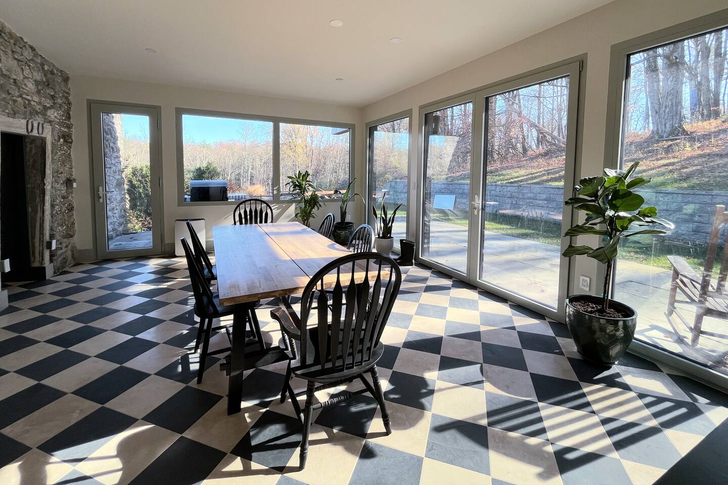 Sole use of the house, the private back yard and stone deck area, fire pit and gas fired bbq so you can relax under a canopy of trees in total privacy. 7 acres of mixed woodlands SHARED heated salt water pool access during pool season from mid MAY until late September (weather dependent.) We own the 2 bedroom cottage next door ( set a good distance away) which we also rent with pool access. See “other details to note” section for further detail. Access to combo heat pump washer/dryer located in the basement. Generator on site incase of power outages. The cottage is set on a cul de sac and is very, very private and quiet. It is the Stone house that accompanies our smaller cottage house 120 feet away. These are the only 2 houses on the property.